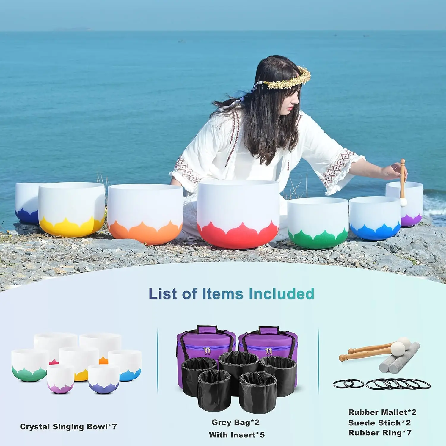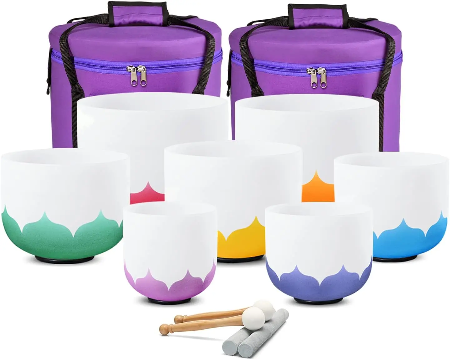 Crystal bowls *6 –12″C+11″D+10″E+9″F+8″G+7″A+6″B